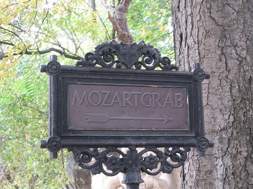 Indicación, para no perderse, hacia la tumba de Mozart, en el cementerio de San Marcos.