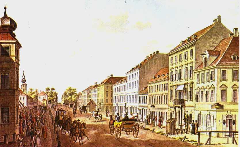 | Viena. Vista de la calle Jägerzeile, en tiempos de Schubert. |
