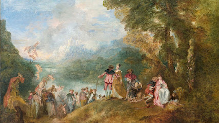 El cuadro de 1717 del pintor francés Jean-Antoine Watteau describe una alegre fiesta de enamorados llegando (o partiendo de) a una de las islas jónicas en el Mediterráneo, Citera, conocida como el lugar de nacimiento de Venus, la diosa griega del amor. El cuadro de Watteau sirvió como inspiración a Debussy para su reluciente pieza para piano solo "L'Isle Joyeuse" (La Isla Feliz), compuesta en el verano de 1904, precisamente en una isla frente a Normandía, mientras trabajaba a su vez en su pieza sinfónica La Mer.